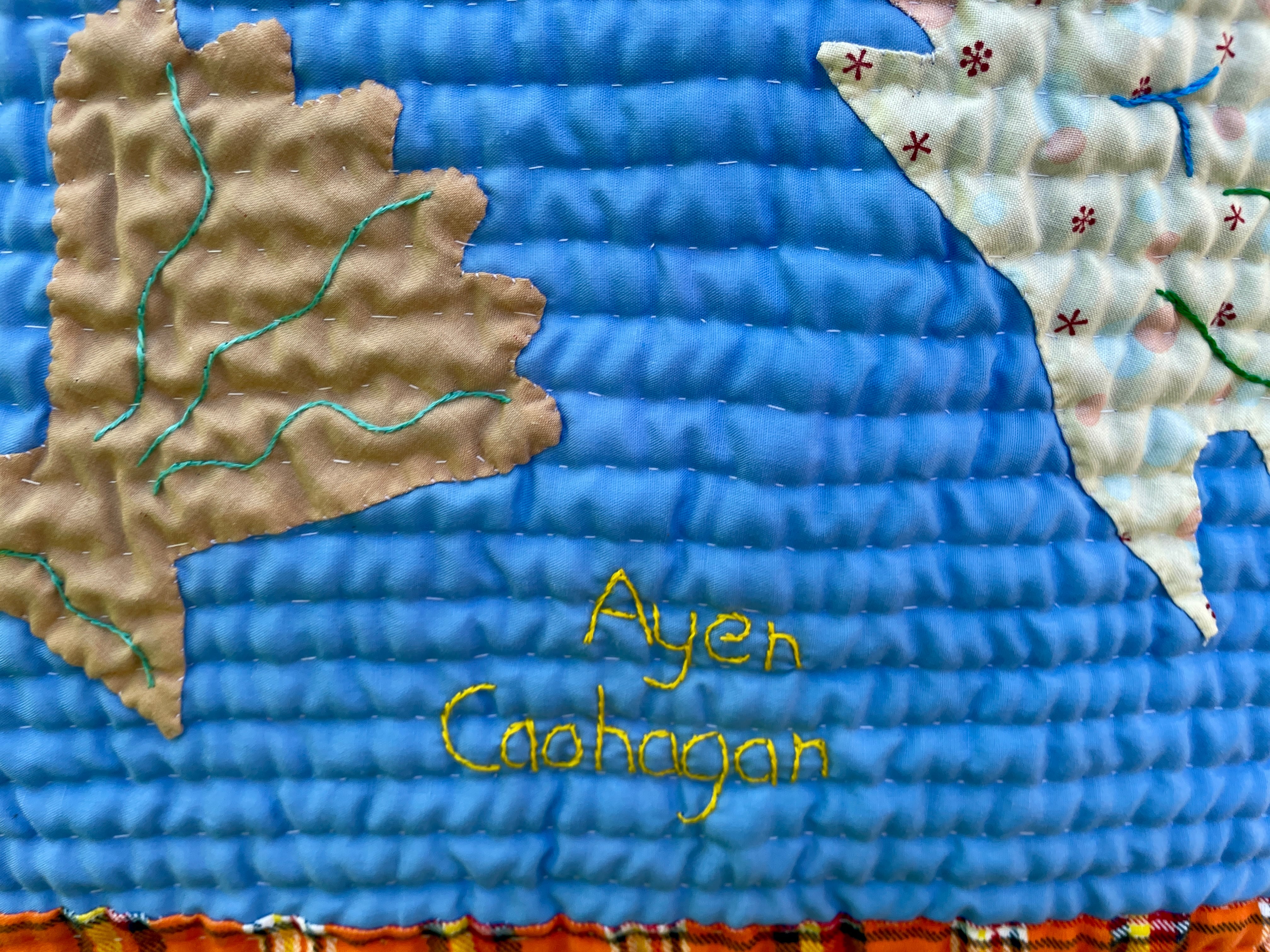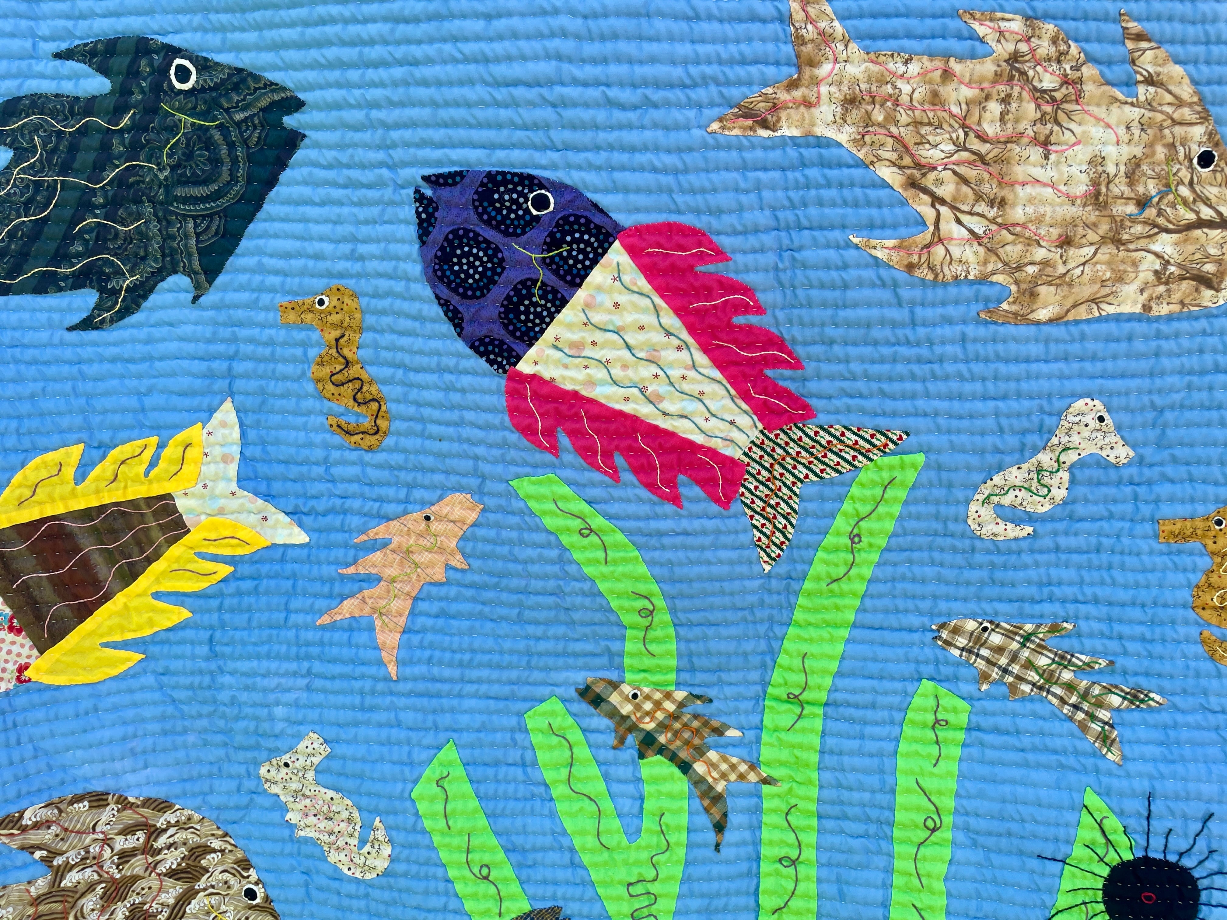 わたしたちは気がつかないような小さな魚が浅瀬にたくさんいます。そんな日常の風景を切りとってキルトにしているアエンがとても魅力的だと感じました。