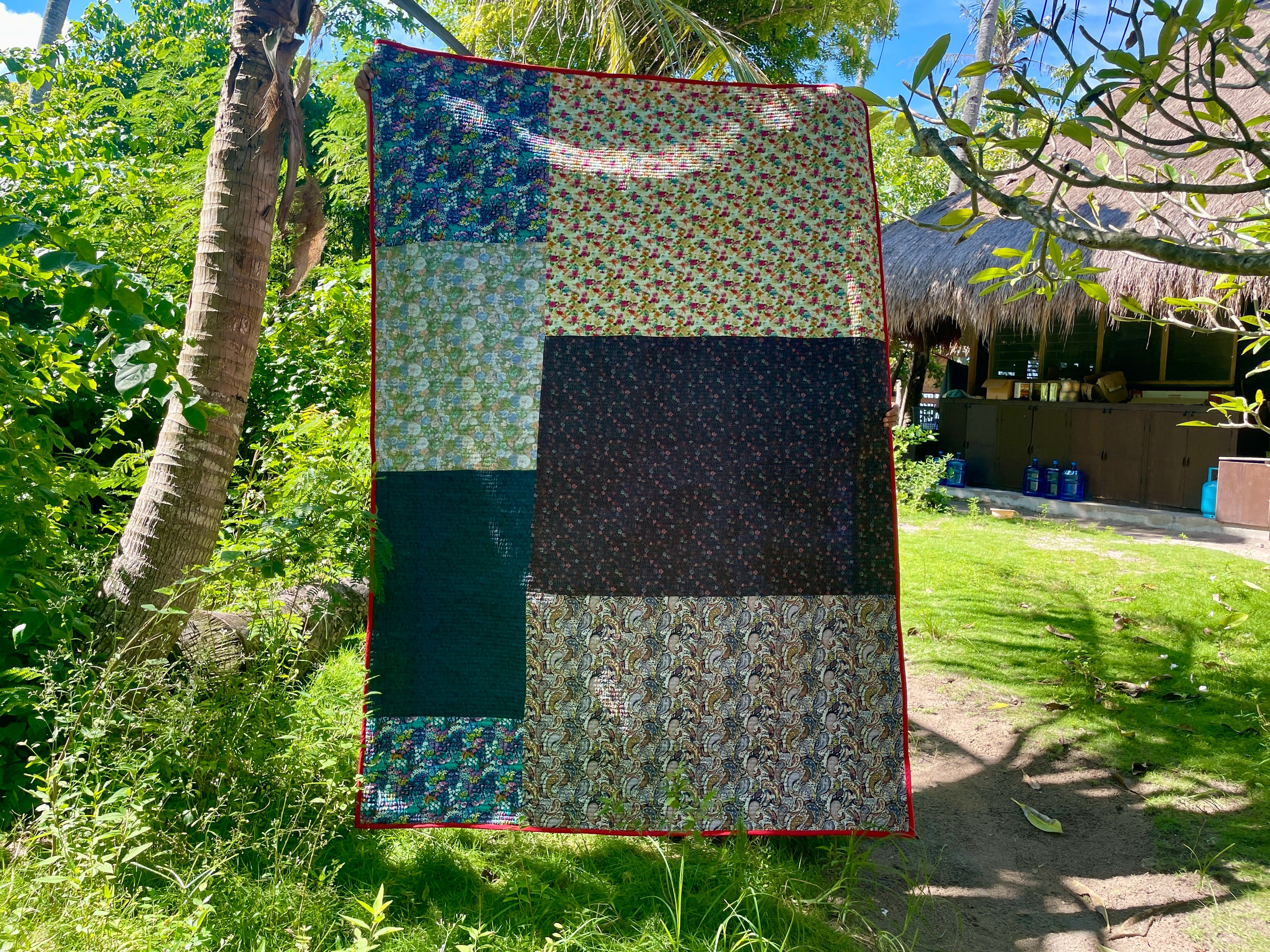 大きなキルトはベットカバーにしてもカーペットとして使っていただいても心地よいです。暮らしの中でぜひたくさん使ってくださいませ。