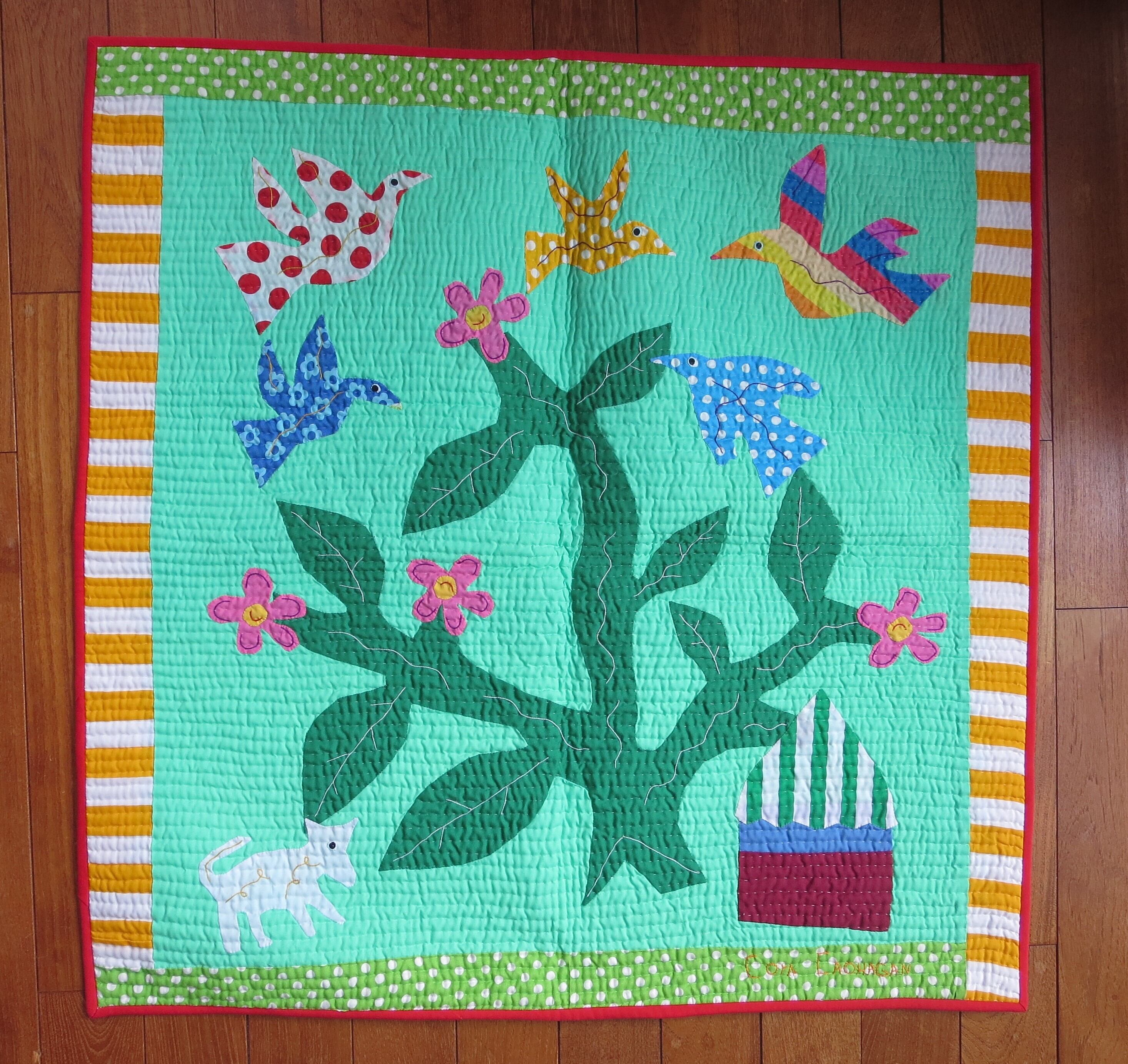 アップリケからキルティングまで、すべてハンドメイドで仕上げたカオハガン島オリジナルキルトです。