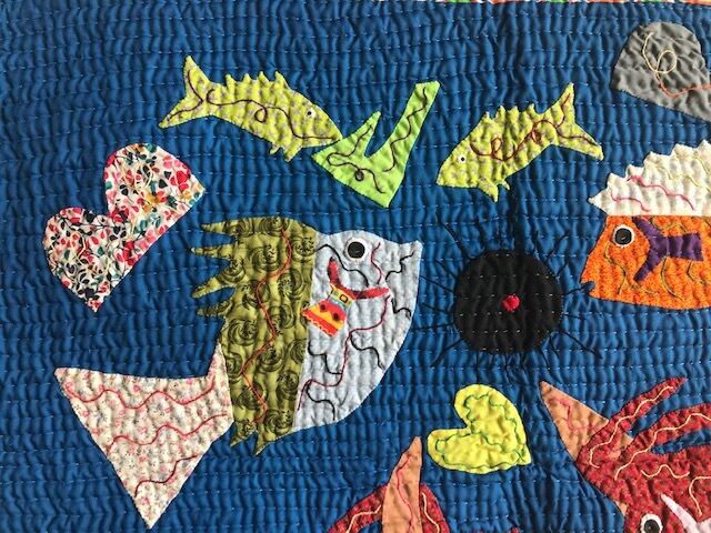 自然豊かな島で育った島民が、その感性を生かしてひとつひとつ丁寧に創っていくキルト。一人のキルターがひとつの作品を構想し、創り上げるのに約1-2か月かかります。定規や鉛筆を使わずに、ハサミで自由に生地をカットして、それをアップリケしていきます。どこか曲がったようなデザインだったり、今にも動き出しそうな動植物が、キルトをより楽しいものにしていきます。
