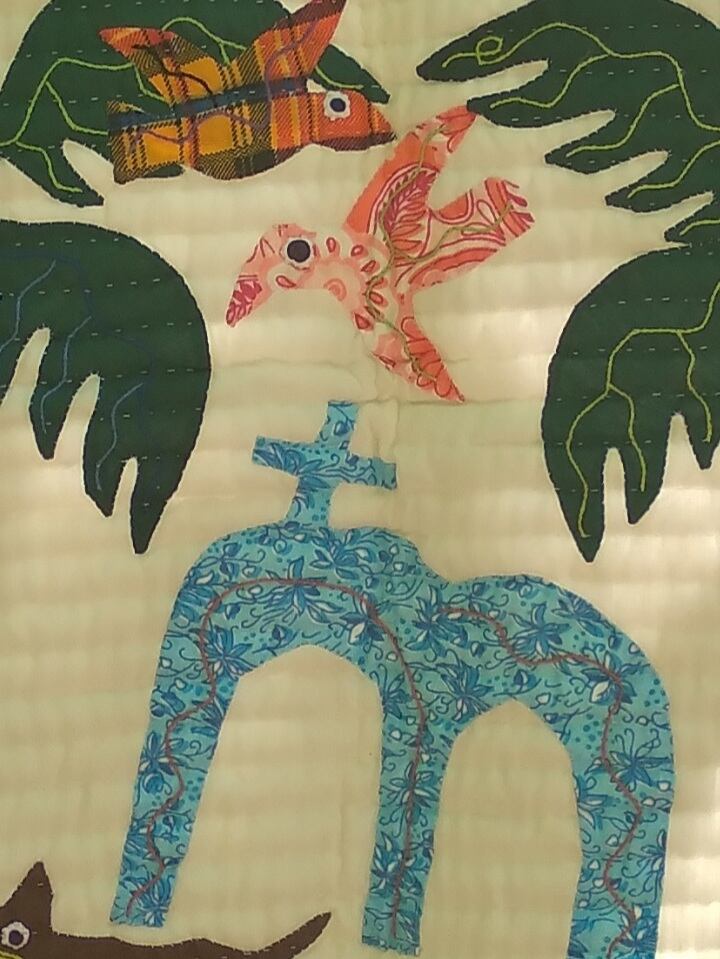 自然豊かな島で育った島民が、その感性を生かしてひとつひとつ丁寧に創っていくキルト。一人のキルターがひとつの作品を構想し、創り上げるのに約2か月かかります。定規や鉛筆を使わずに、ハサミで自由に生地をカットして、それをアップリケしていきます。どこか曲がったようなデザインだったり、今にも動き出しそうな動植物が、キルトをより楽しいものにしていきます。