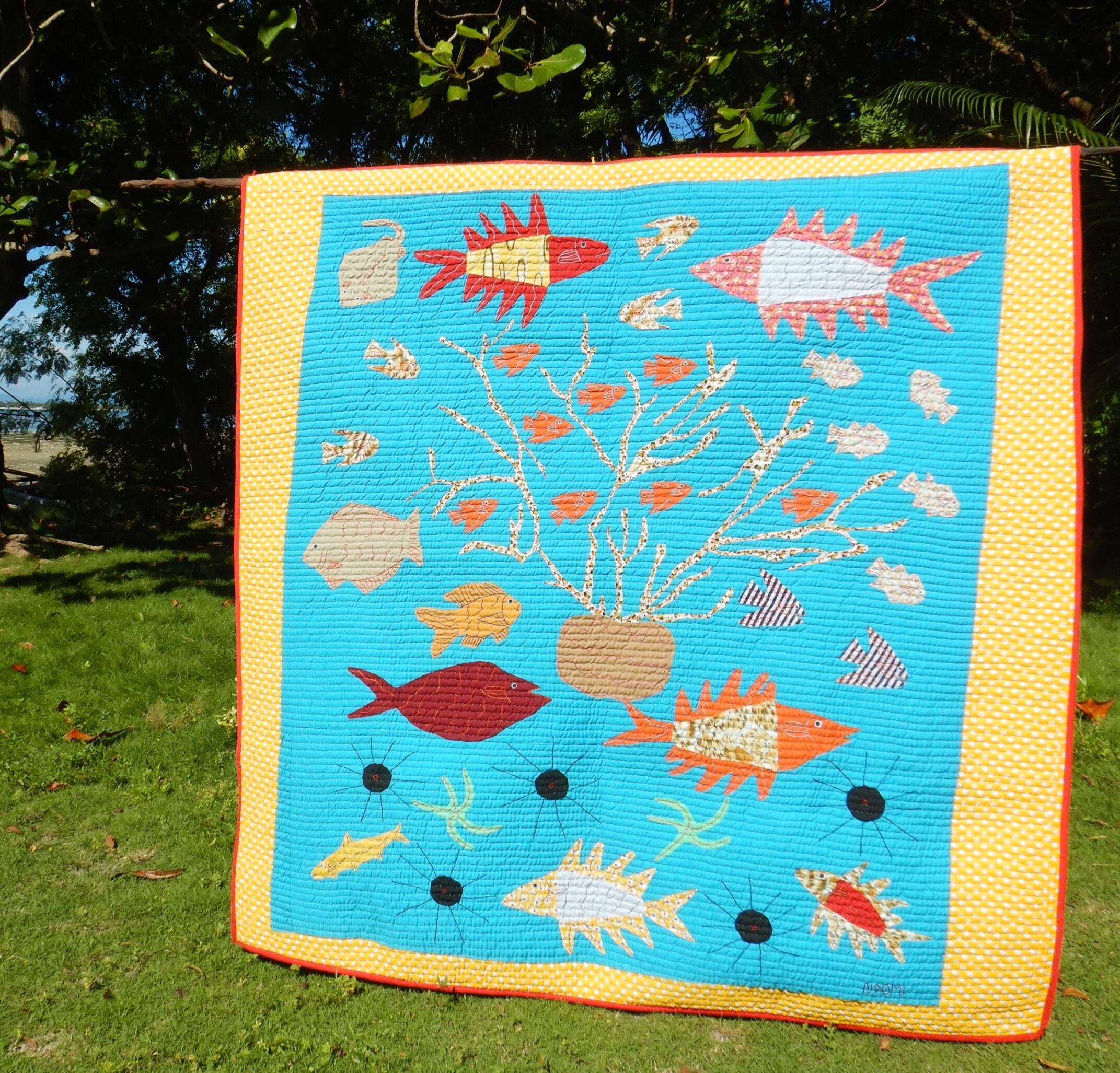 アップリケからキルティングまで、すべてハンドメイドで仕上げたカオハガン島オリジナルキルトです。
