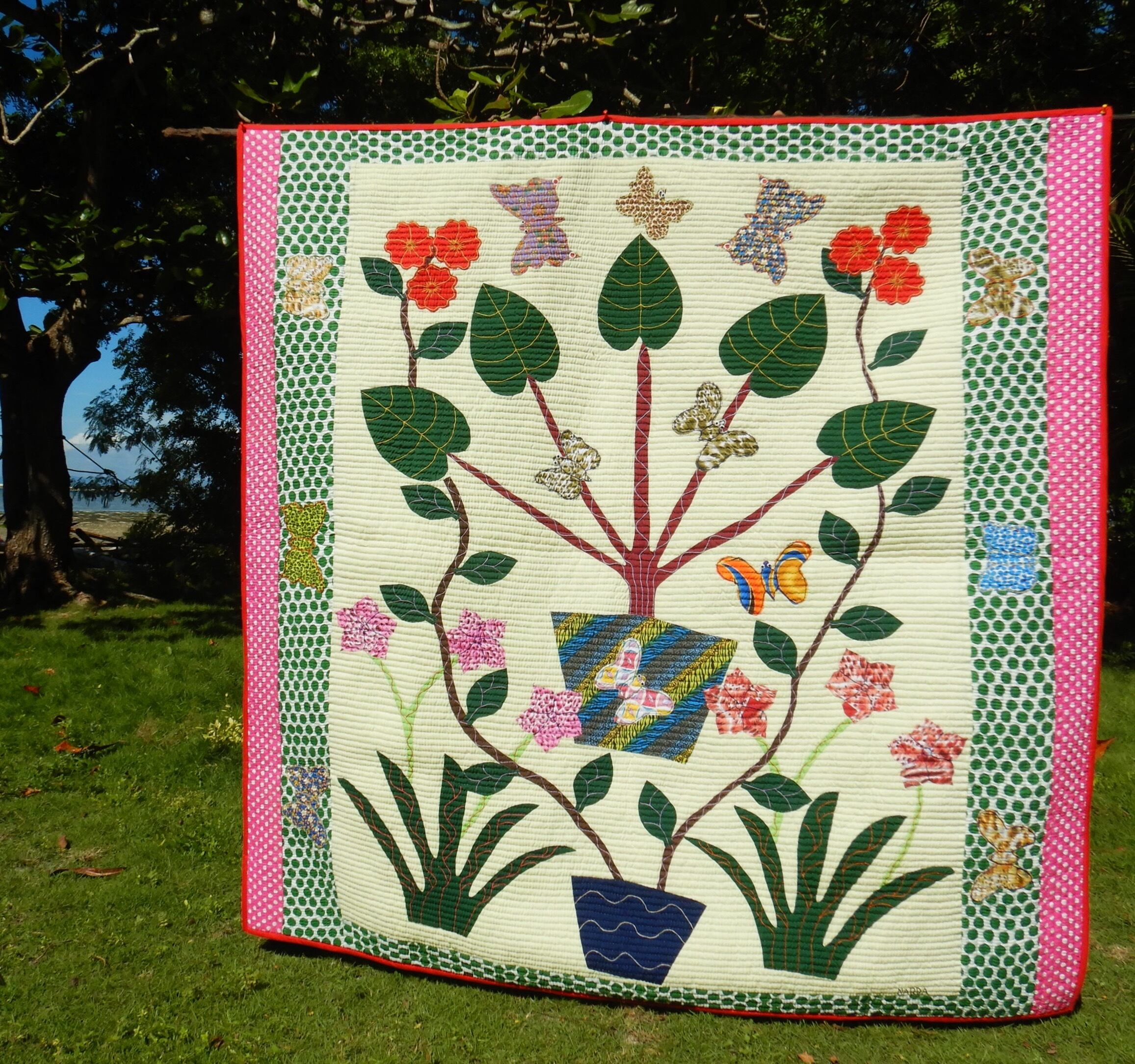 アップリケからキルティングまで、すべてハンドメイドで仕上げたカオハガン島オリジナルキルトです。
